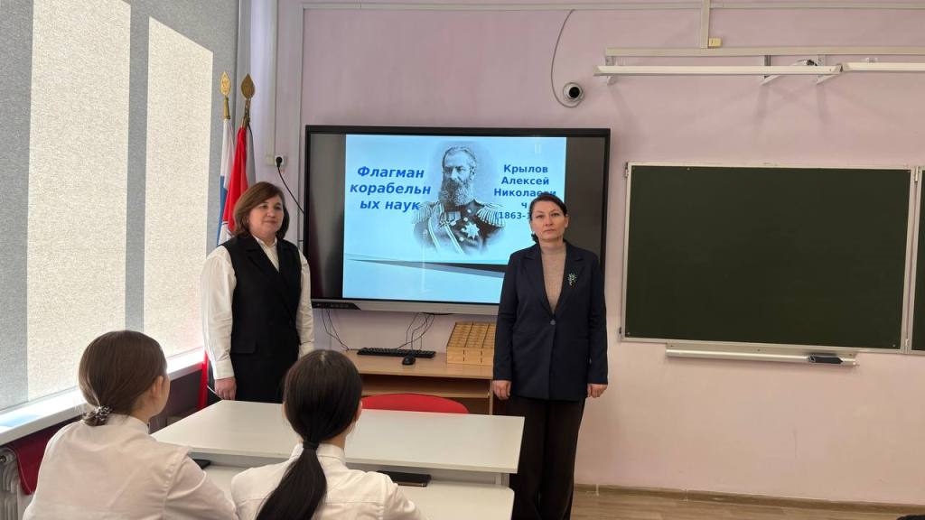 Вниманию кадетов были представлены блистательные страницы жизни их выдающегося земляка – Алексея Николаевича Крылова, который внес неоценимый вклад в науку и флот. Он родился в д. Висяги (ныне Крылово) Порецкого района Чувашской Республики.